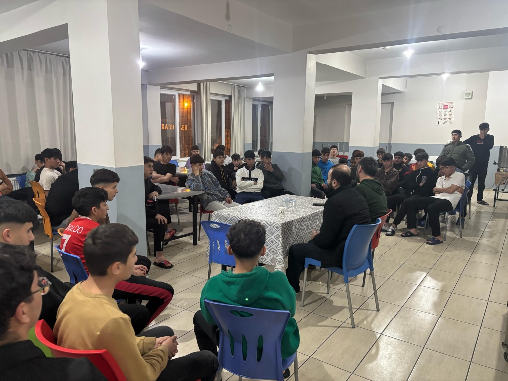 Okulumuza bağlı erkek öğrenci pansiyonumuzda kalan öğrencilerle "İftarda Buluşalım" programı kapsamında sohbet yapan Siirt üniversitesi eğitim fakültesi öğretim üyesi Doç. Dr. Yusuf Yıldırım, Siirt üniversitesi eğitim fakültesi dekan yardımcısı Dr. TAYFUN AKIN hocalarımıza teşekkür ederiz.